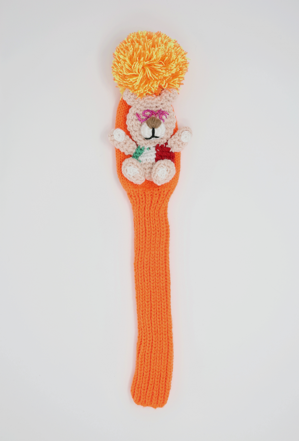 イタリアンカラーのクマの編みぐるみ付きフェアウェイウッド用ヘッドカバー。